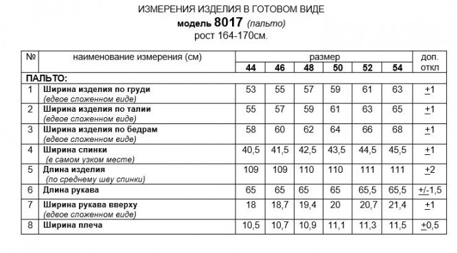 Длина (по среднему шву спинки) ~ 110 см. (+2 см.)
